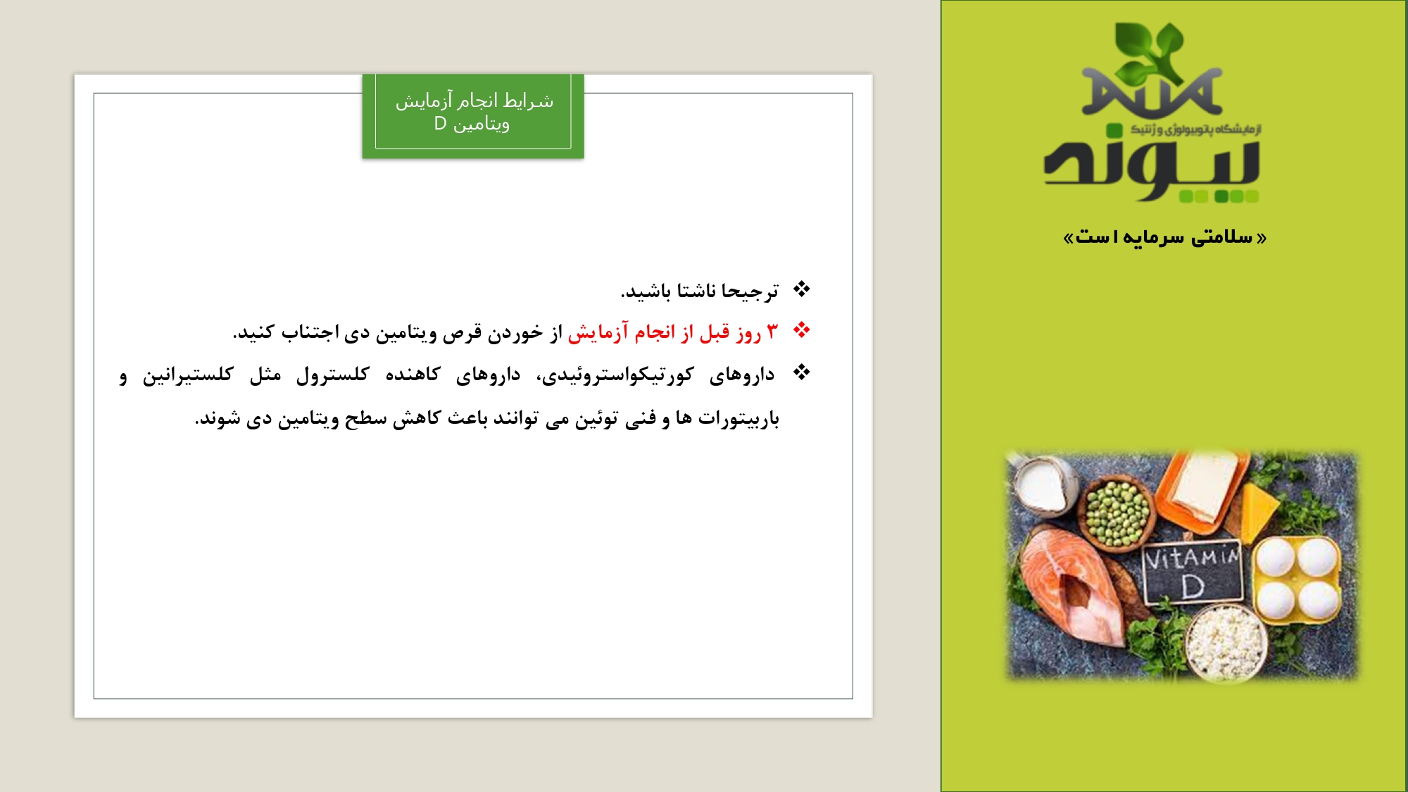 فایل شرایط ناشتایی به تفکیک نام آزمایشات : دانلود فایل